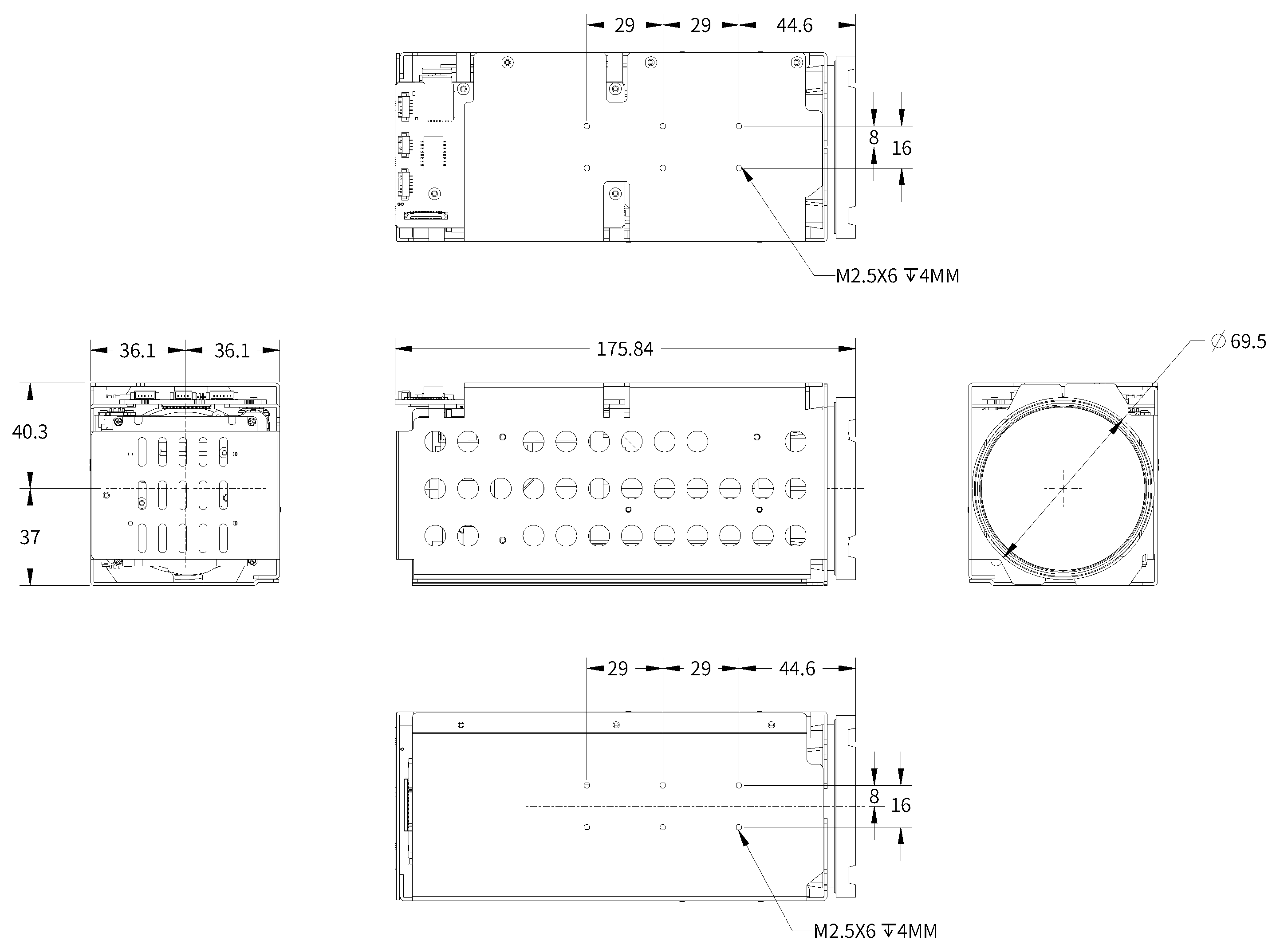 4pin Ethernet Port, 6pin Power & Uart Port, 5pin Audio Hafen. 30pin MIPI |